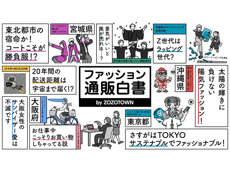 ゾゾは、運営20周年を迎えた「ゾゾタウン」のこれまでの購買データをもとに、「ファッション通販白書バイゾゾタウン」を発表した。