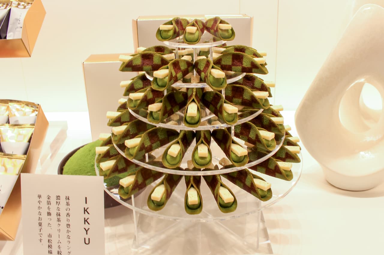 「IKKYU」(5個入)837円~ 格子模様のラングドシャでホワイトチョコレートと抹茶クリームを包んだ看板商品「IKKYU」のほか、生チョコレートなど、ここだけの逸品が並びます。