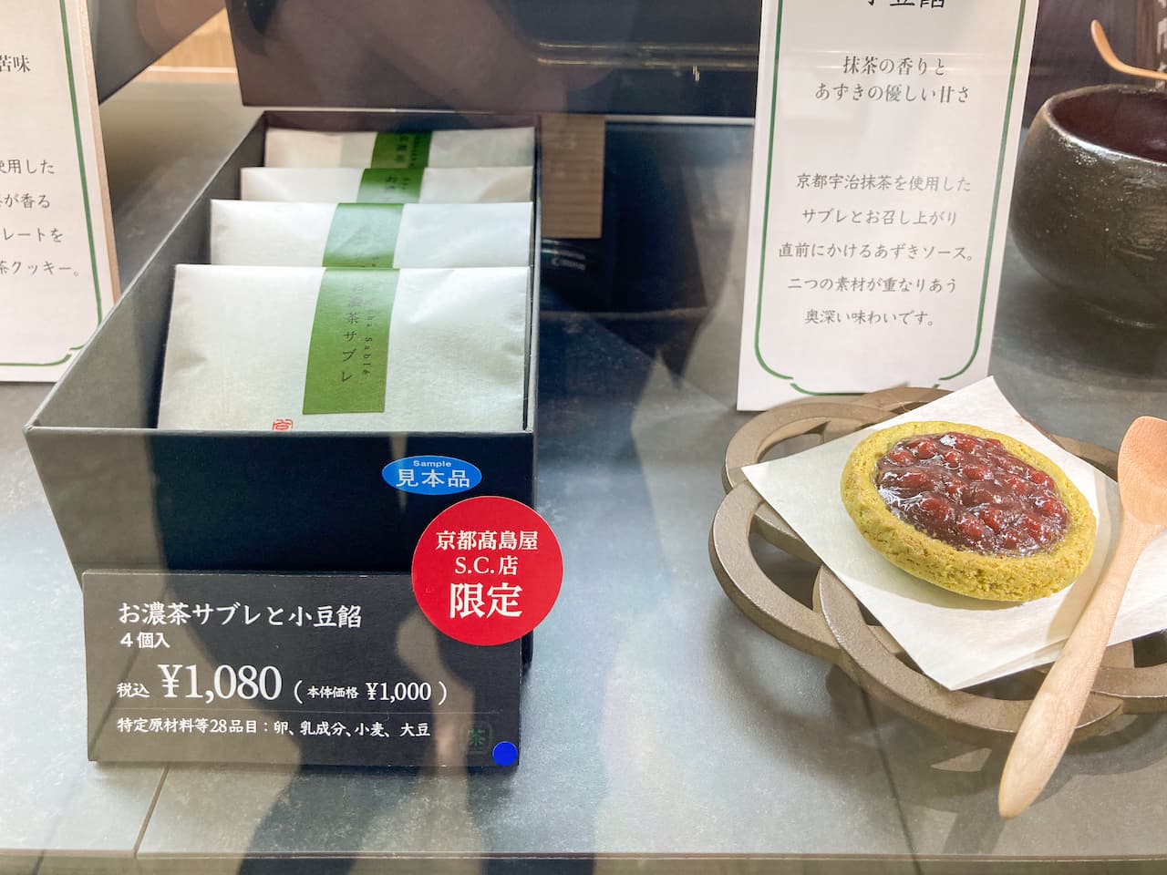 「お濃茶サブレと小豆餡」(1個)270円 サクサクの抹茶サブレに、別添えのあずきソースをかけていただく「お濃茶サブレと小豆餡」は、京都高島屋限定商品。