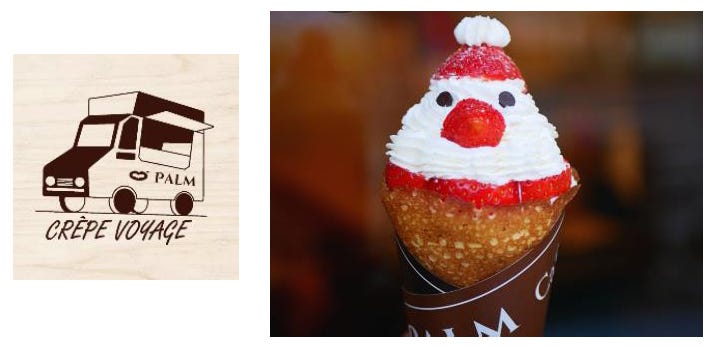 大阪市内でクレープ屋を3店舗運営する「PALM」がキッチンカーで登場! クリスマス限定クレープや温かなドリンクが用意されます。