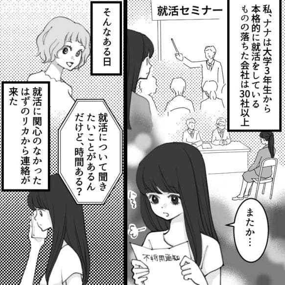 主人公は就活に力を入れているものの、落ち続ける日々が続いていました。