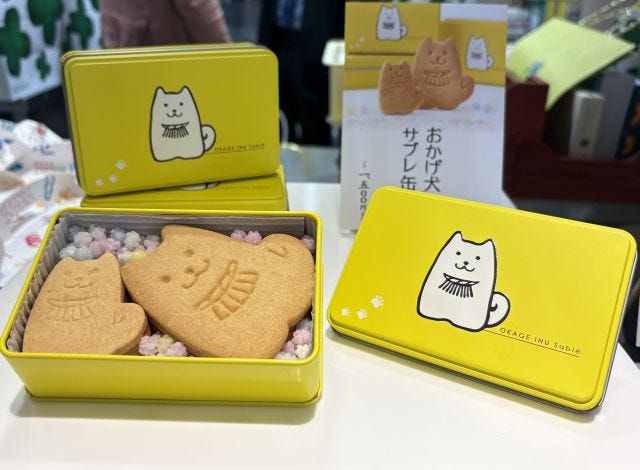「おかげ犬サブレ 缶」1,500円 「おかげ犬サブレ 缶」は、阪神梅田本店での先行販売アイテム。三重県産小麦粉と国産バターを使ったサブレに金平糖を添えた、見た目も味もかわいい逸品です。