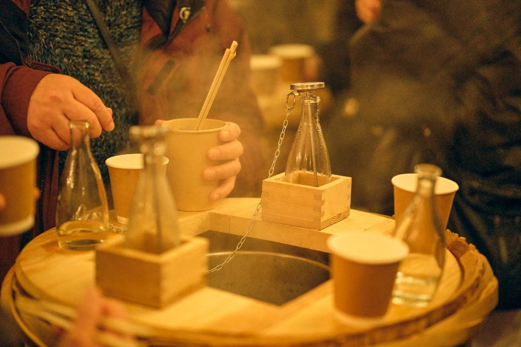 フードマーケットゾーンには、毎日20台のキッチンカーが登場します! テントブースでは神戸ワインや灘の日本酒を中心に、神戸のお酒や料理も充実。寒い季節に冷えた体を芯から温めてくれるドイツのクリスマスに欠かせない甘口ホットワインや、ワイン用ぶどうでつくった無加糖・無濃縮ジュースなどもそろいます。