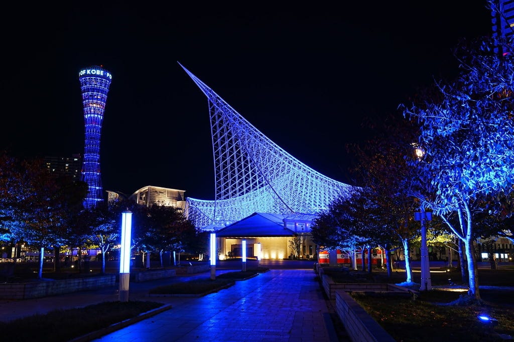 メリケンパーク特別ライトアップ/開催時間:17:00~21:00 イベント開催期間中、「神戸ポートタワー」「神戸海洋博物館」「BE KOBEモニュメント」等など、メリケンパークの人気施設各所が特別ライトアップを実施。会場全体が青と白の幻想的な光に包まれます。
