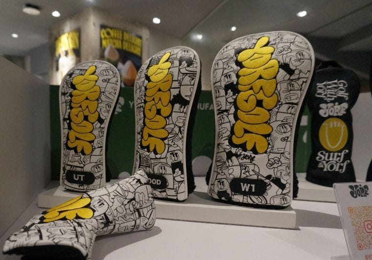 ブランド事業の第1弾となるヨルフは韓国人のグラフィティー作家、ジェイ・フローがアートディレクターを務める。彼の描いた絵柄や文字をカラフルにデザインに取り入れたアパレルや帽子、ヘッドカバー、キャディーバッグなどで構成する。
