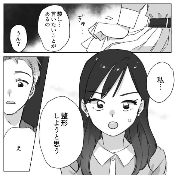 真美は彼氏の駿に「整形しようと思う」と告げます。