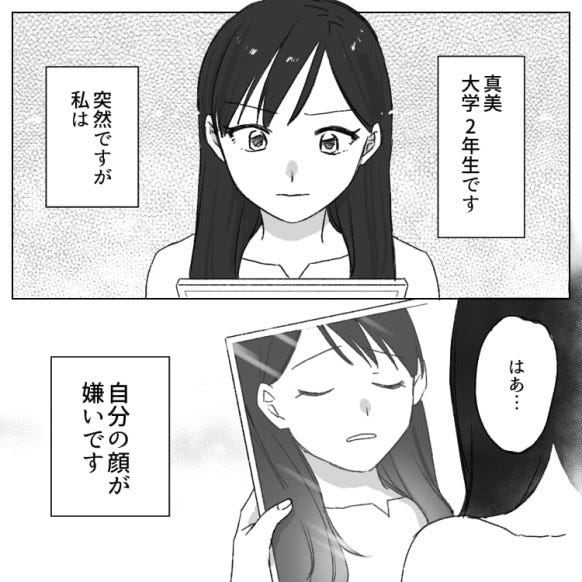 主人公の真美は、自分の顔にコンプレックスがあって……?