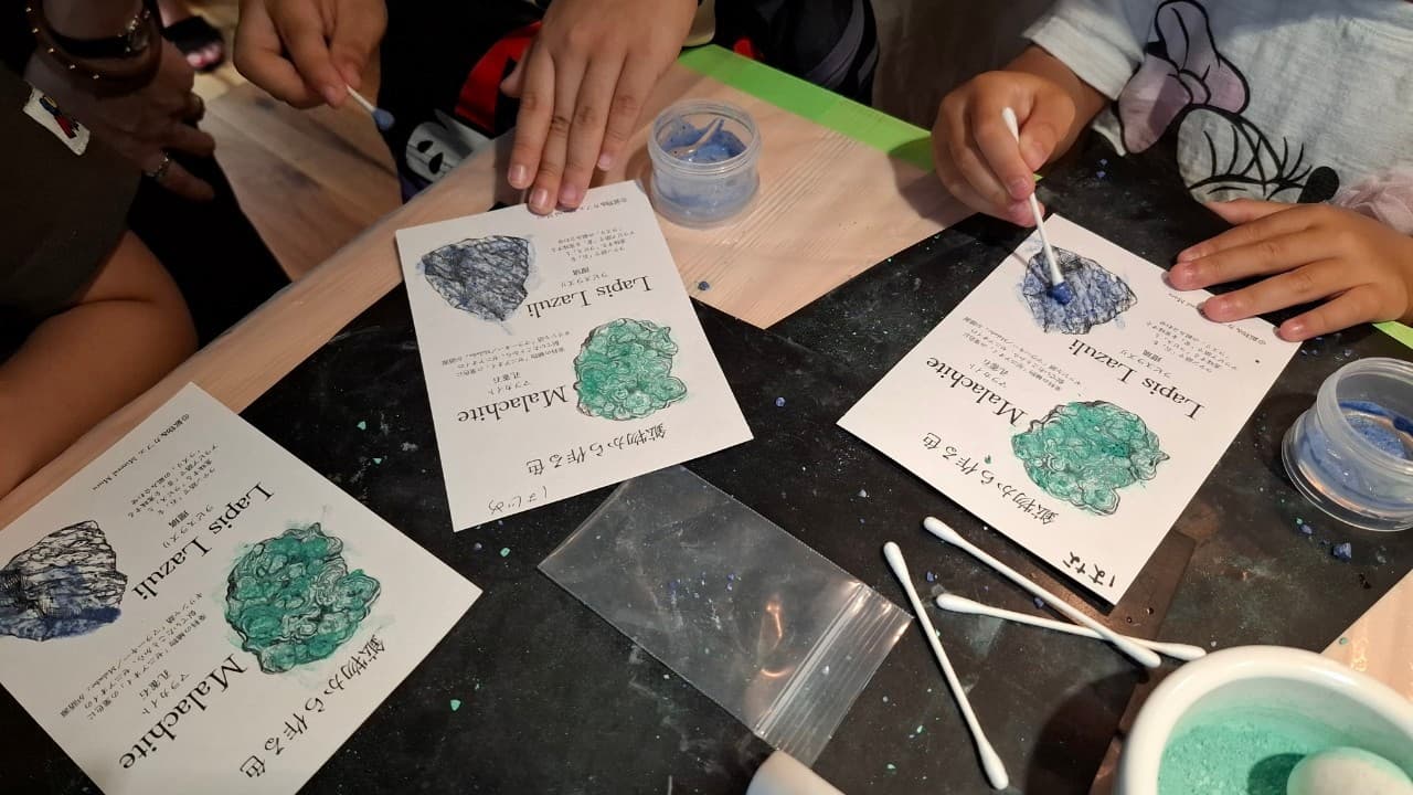 美術史を彩ってきた多くの名画には、ラピスラズリやマラカイトなど鉱物由来の顔料が使用されてきたのだとか。フェルメールや緒方光琳といった巨匠たちも愛した“天然の色”を、自分の手で生み出す特別な体験です。