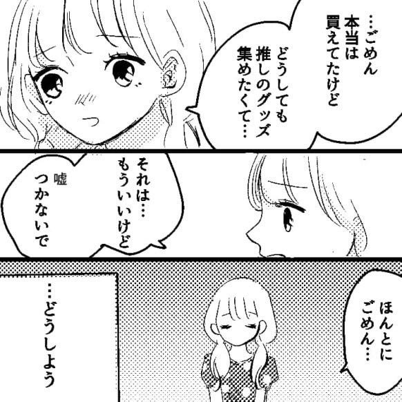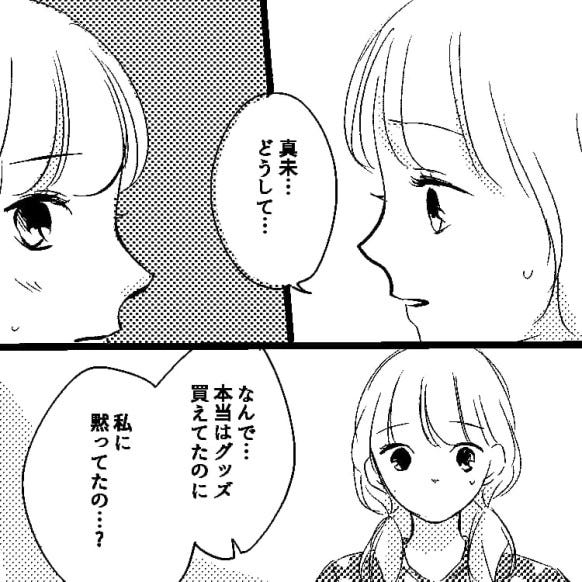 しかし彼女は「売り切れてて買えなかった」と主人公に言います。どうしてもグッズを手にしたい彼女はSNSでお譲りしてくれる人を探すことにしました。