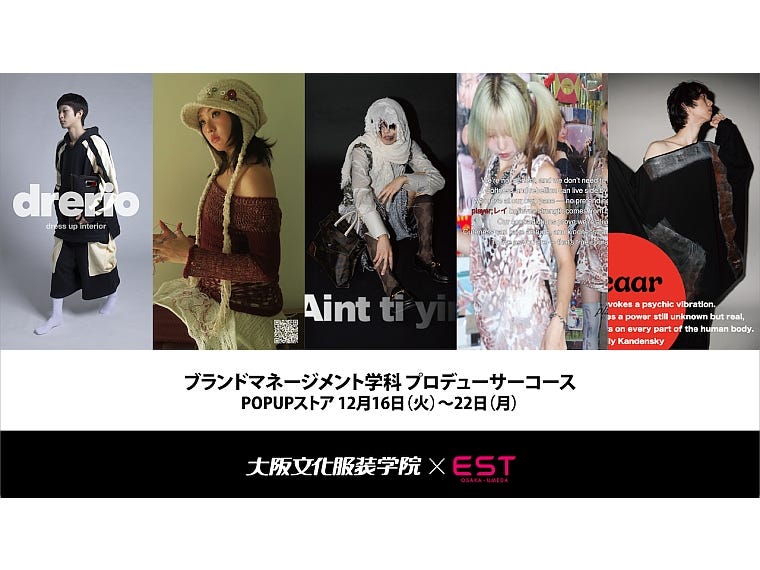 大阪文化服装学院は12月16~22日、大阪・梅田のエストで、ブランドマネージメント学科プロデューサーコースの学生による期間限定店を開く。学生が自身のブランドをマーケットで検証する重要な機会で、エストで実施するのは初めて。