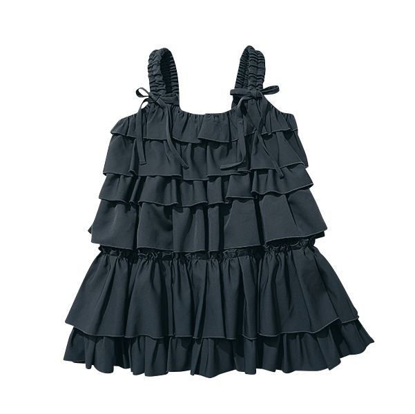 たっぷりのフリルと肩ひものリボンで糖度100%!1枚で即ビジュ映えできるから、推しとのイベントのおめかしコーデにぴったり♡