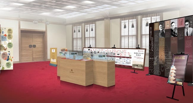 展示会場(イメージ) 会場には、名俳優の直筆サインや明治44年のメニューカードなどの歴史的資産や、リニューアル後のイメージパースの一部を公開。見どころ満載のイベントです!