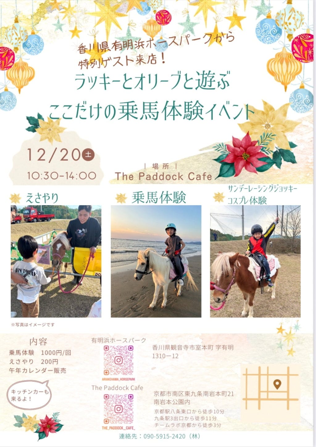 2025年12月20日(土)、京都・南区にある南岩本公園内に「The Paddock Cafe」(パドックカフェ)がオープン。同日にはオープン記念として、ポニー2頭による乗馬体験・餌やり体験イベントが開催されます。