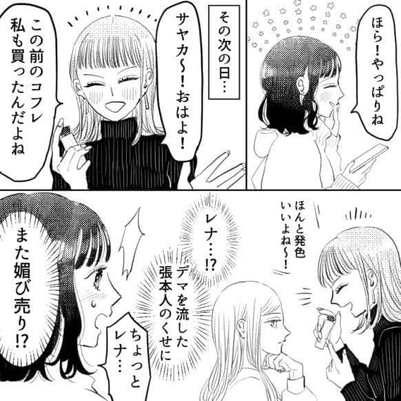 ある日買ったばかりのコスメを持っていると、友だちのレナにバカにされます。