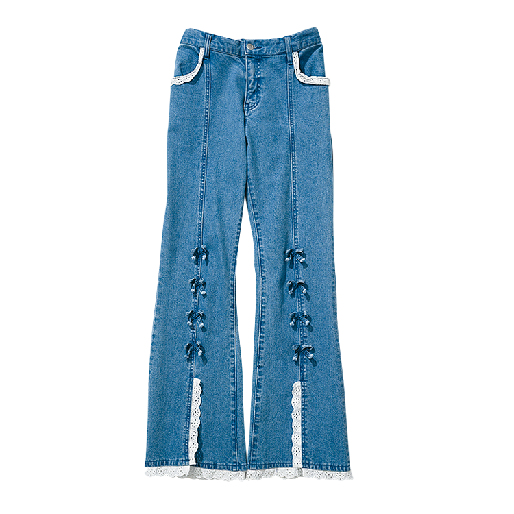 ガーリー好き必見♡ リボン&レースが可愛い【フレアーデニムパンツ】着回し術4選