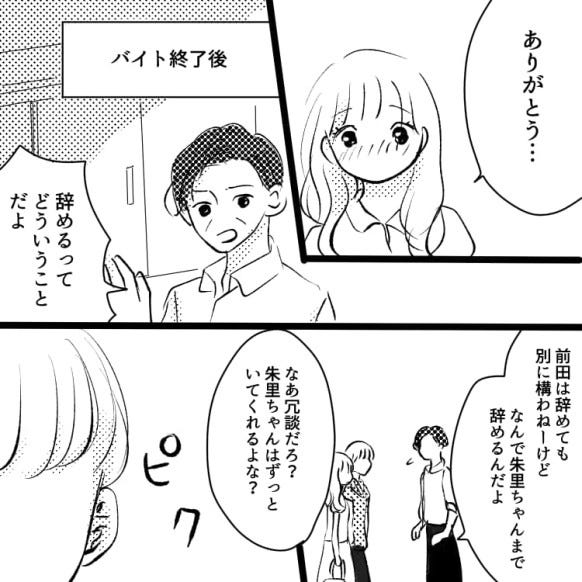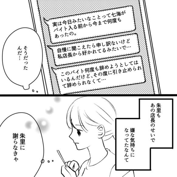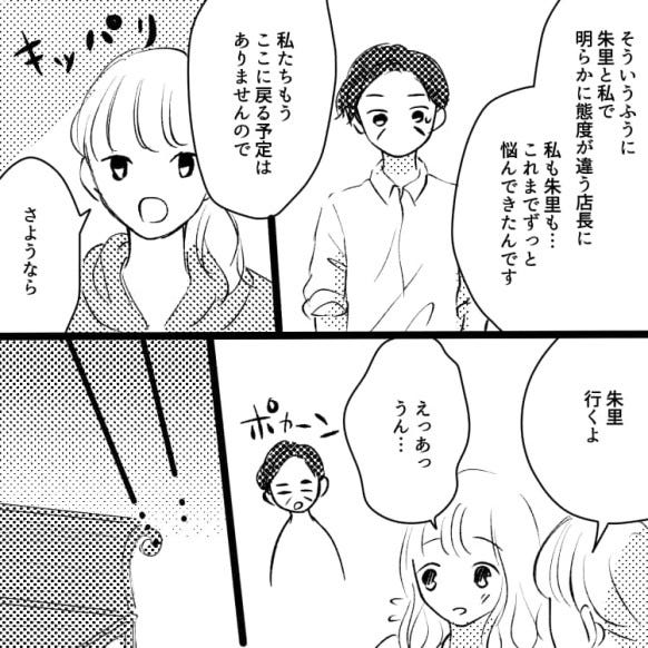 あまりにも贔屓がすごい店長に対して、ついに怒ってしまった主人公。そしてその現場を朱里に目撃されてしまいました。