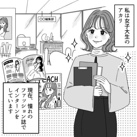 主人公はファッション誌でインターンをしています。
