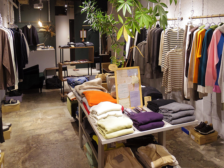 「マイヨ」「オーディナリーフィッツ」「カーリー」など国産ブランドを中心に扱う。今秋は同店5周年を記念し、初の別注商品も提案。カーリーの協力を得て残布を活用したドローストリングバッグを打ち出し、好評だった。