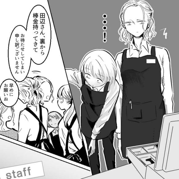 業務のやり方がわからないなかで、なんとか対応しようとするも店長に叱られてしまいます。