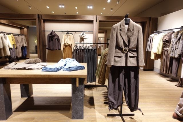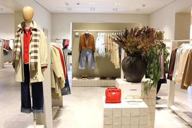 2階では、スポーティエレガント、ファーやビジューをあしらったフェミニンなウィメンズウェアを展開します。