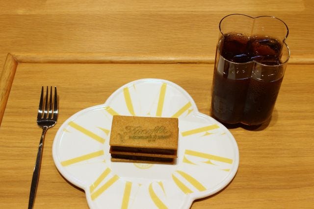 心斎橋店でしか食べられないスイーツも見逃せません。さくさくのクッキーと濃厚なショコラテリーヌを重ねた「クッキーショコラテリーヌ」(880円)は、オリジナルブレンドのコーヒーにぴったりです。カフェ専用にデザインされた食器も素敵。