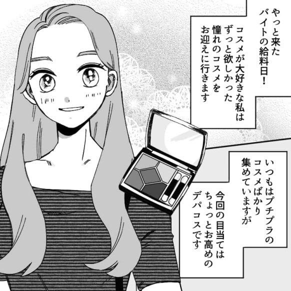 やっと来たバイトの給料日に、ずっと欲しかったデパコスを買おうと決意します。