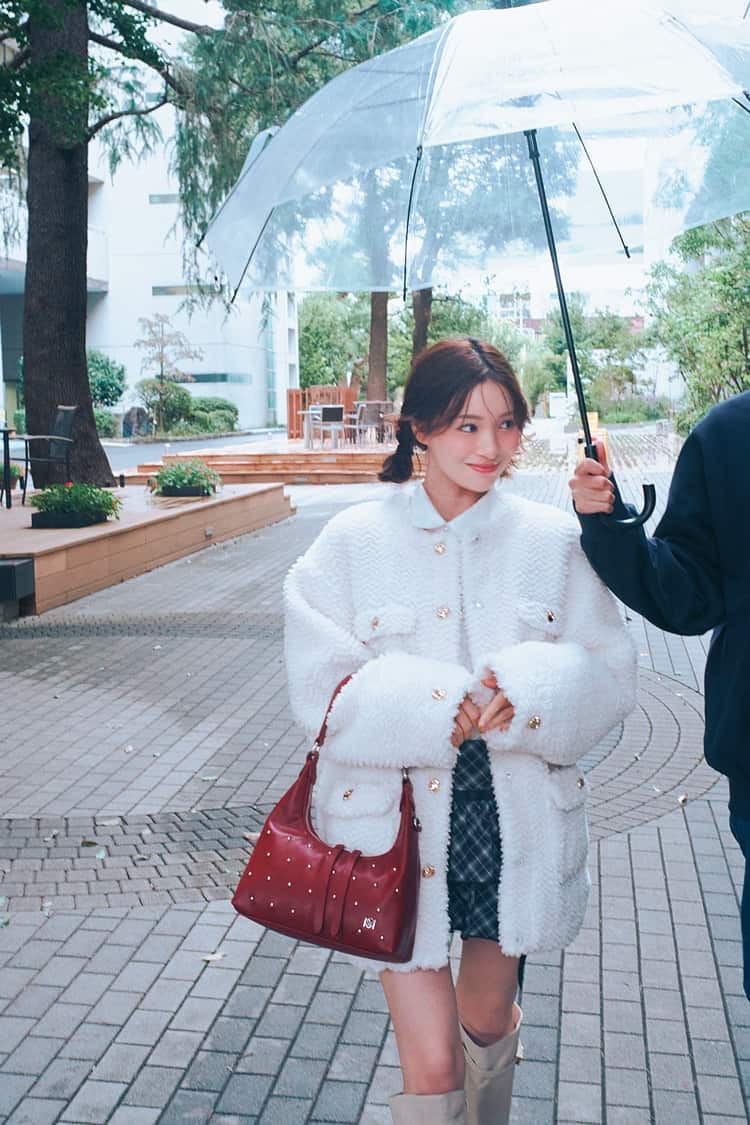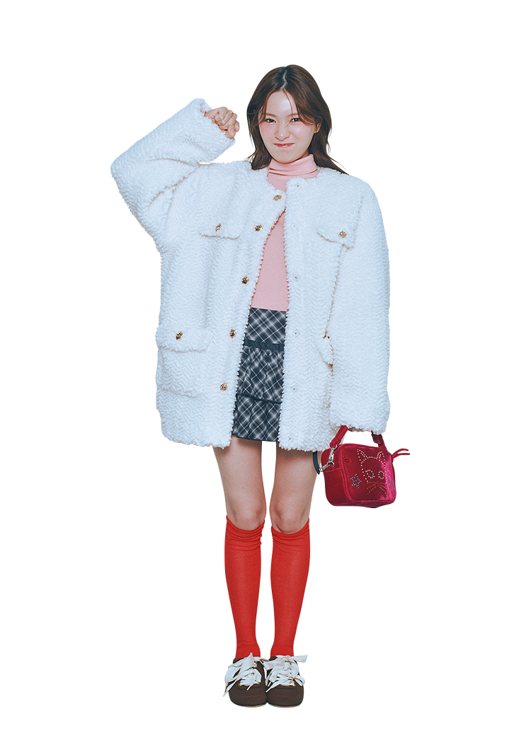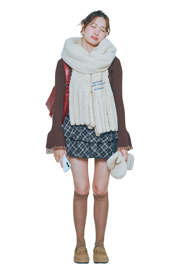 寒い冬にぴったりなもこもこアウターが、華やかなでフレンチガーリーな印象を与えてくれる♡ チェックミニをあわせてスクールガールなフレッシュさをプラスして。