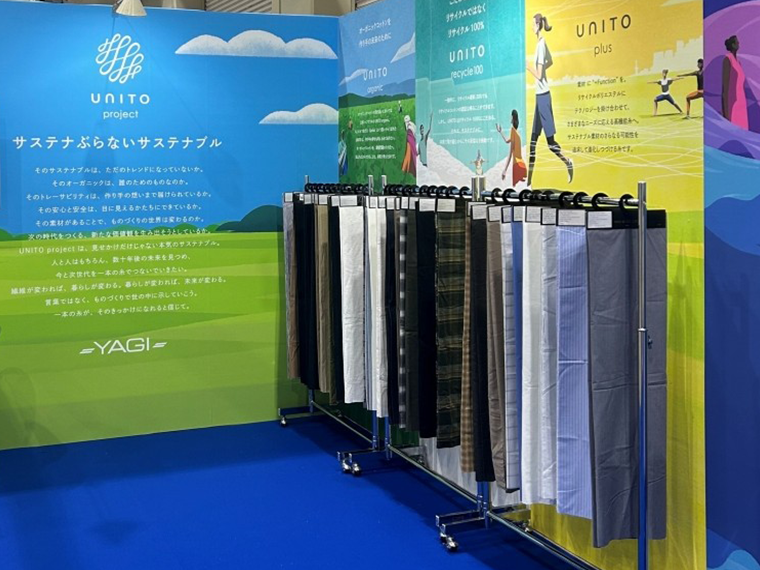 ヤギは、環境配慮型素材「ユナ・イト」シリーズを軸に付加価値糸の販売を強めている。ただ「糸だけでの提案では限界がある」と産地企業との協業で独自糸を使った生地を開発し、提案の幅を広げる。