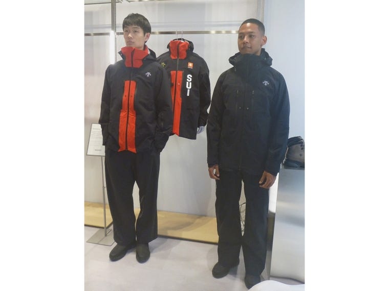 スキージャケットはハードシェルとミドルレイヤーに分かれており、気温や使用状況に応じて、それぞれ単体での着用も可能な3イン1仕様。ハードシェルジャケットは衣服内の蒸れを解消したいという選手からの要望もあり、蒸れで不快を感じる箇所に空気の流れを促す換気構造を搭載した「エアロストリーム」シリーズとした。ミドルレイヤージャケットには温かさを感じやすい部分のみに中わたを配置し、効率よく保温する独自の機能設計「スマートパディング」を採用し、「暖かさを閉じ込める保温性」と「蒸れを防ぐ透湿性」の両方を兼ね備えた。