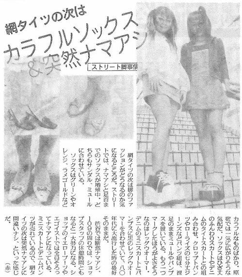 《平成ストリートスナップ》網タイツの次はカラフルソックス&突然ナマアシ(2001年2月28日付)