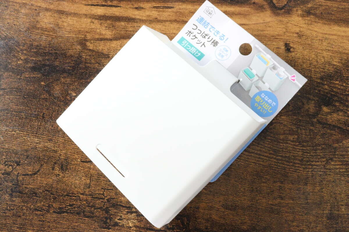 先日セリアを訪れた際に『連結できる!つっぱり棒ポケット 引っ掛け』という商品を発見しました。