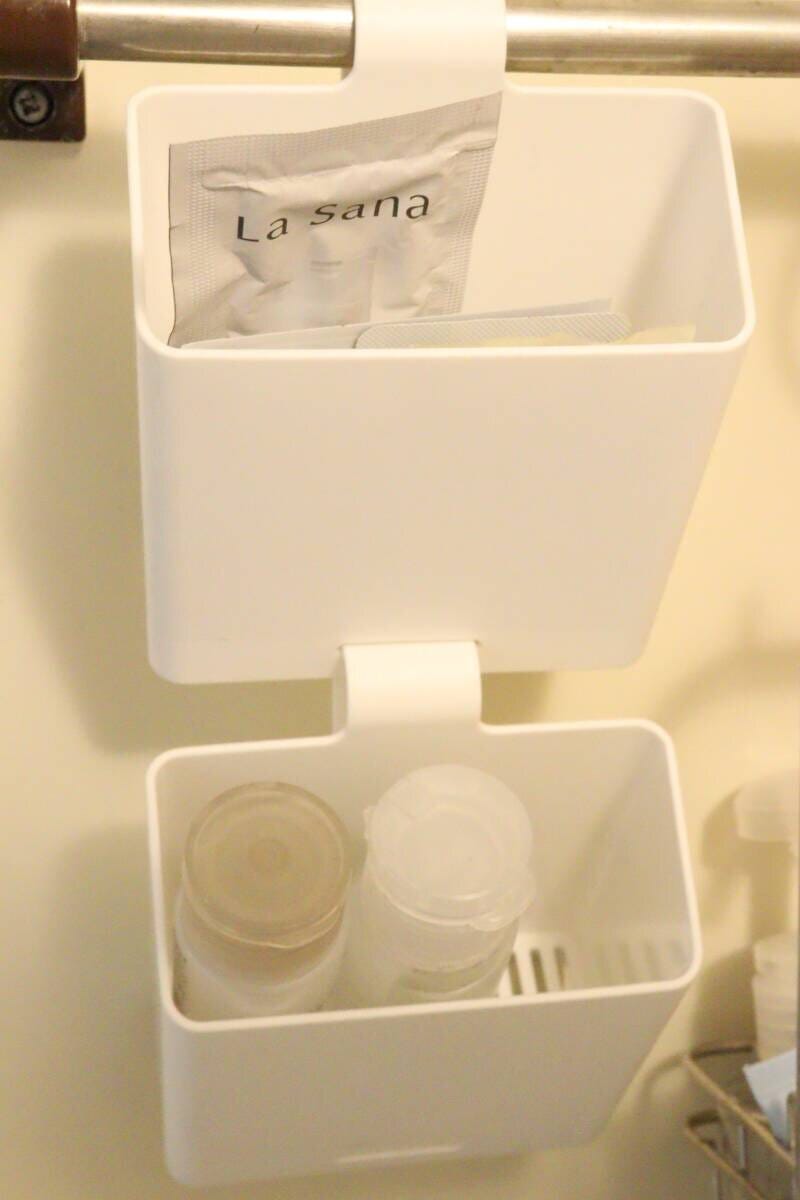 吊るせる収納グッズの強みは、なんといっても掃除がしやすいという点。特に水まわりなどではヌメリ汚れを防止するため、吊るす収納グッズを使っている方も多いと思います!