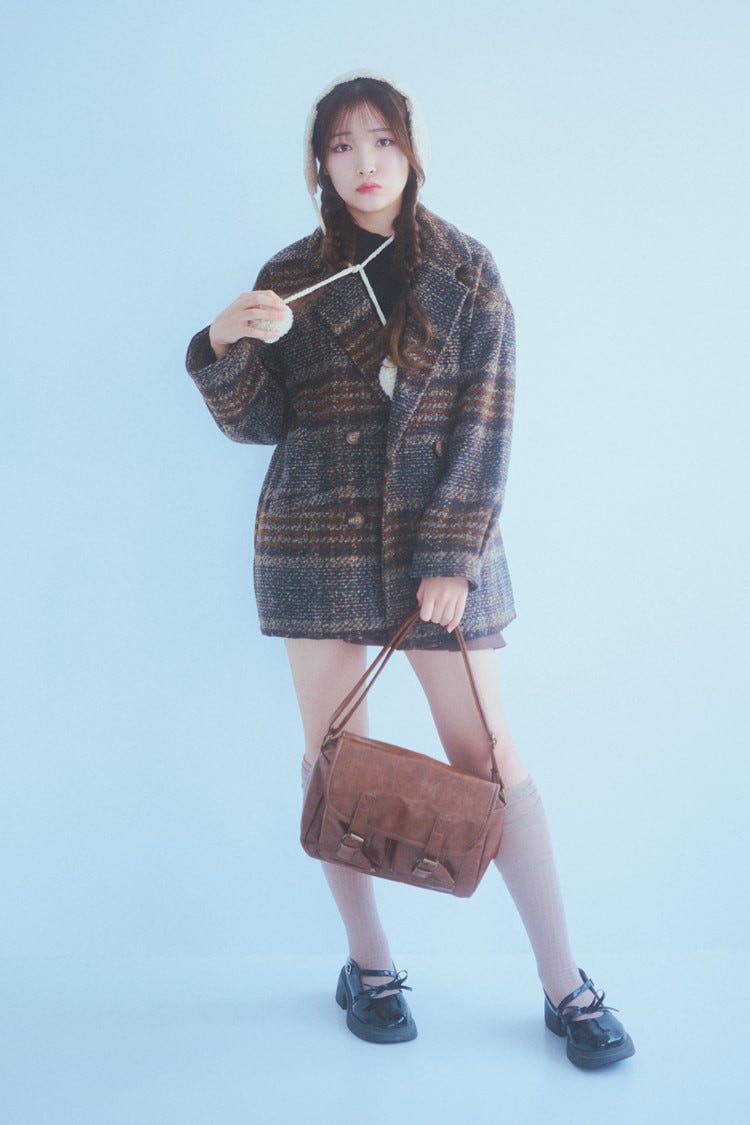 。オーバサイズのブラウンジャケットを羽織ることで、キメすぎていない脱力感があるのも◎でした」ポージング・表情▷6点