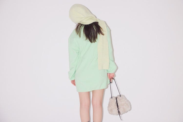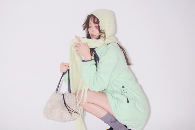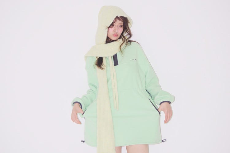 旬すぎるもこもこフリースは淡グリーンで脱マンネリ