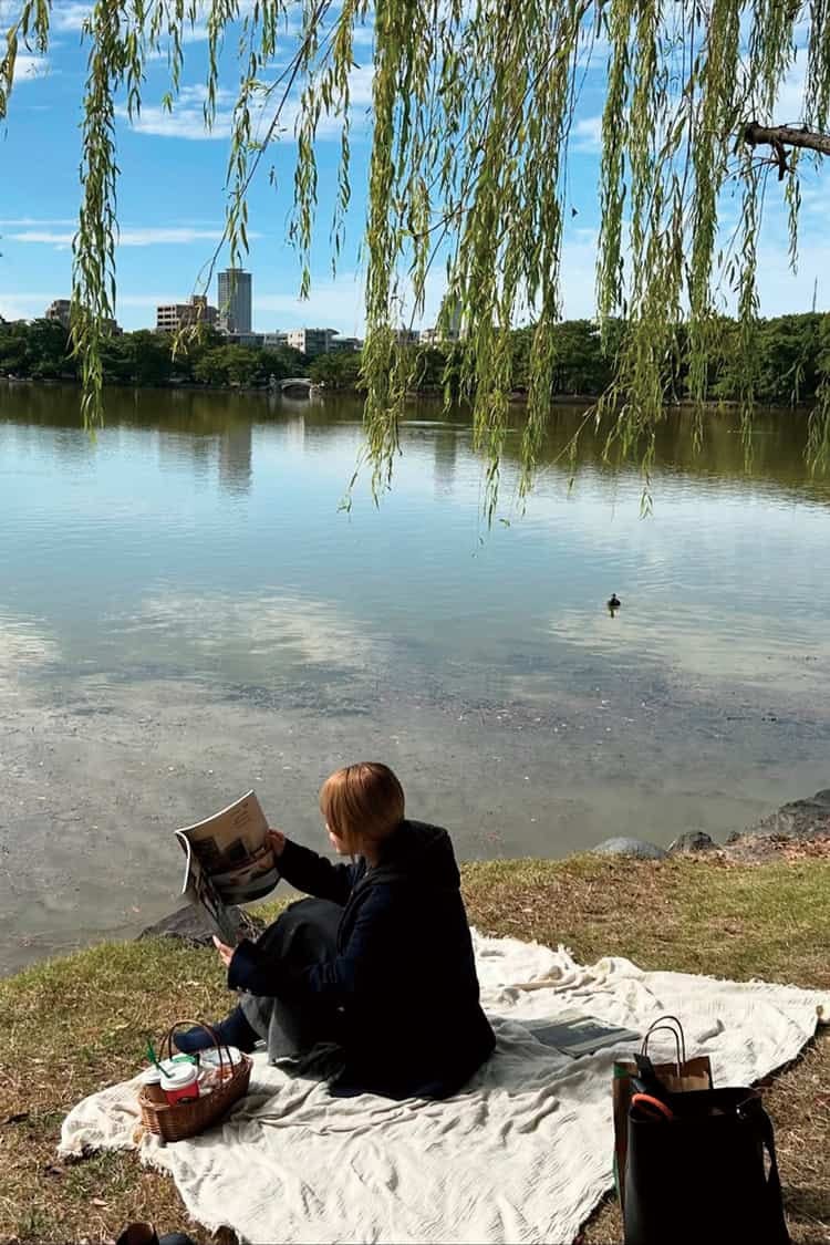 「福岡市のまんなかにあるのに、ちゃんと静かで、特別な予定がなくても満たされる大濠公園へ。雑誌を読んだり、友人と話したりして過ごすことが多いです♪」