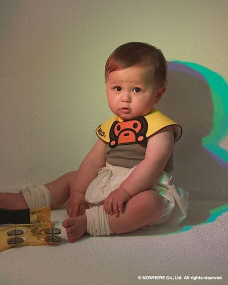 ベビー、キッズの雑貨や服を製造販売するヨム(東京)は、ギフトブランド「マールマール」で、「ア・ベイシング・エイプ」と協業した商品を発売しました。ア・ベイシング・エイプを象徴する「ベイビーマイロ」や「ABCカモ」柄を使い、ストリート感のあるアイテムを揃えました。