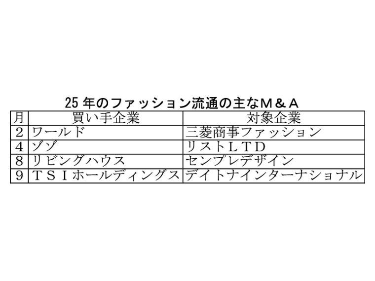 25年も産業界ではM&A(企業の合併・買収)が活発で、過去最高ペースで増加している。繊維・ファッション業界では目立ったニュースは一部だが、開示義務のない未上場企業のM&Aを含めれば、消費低迷下でその数の多さは容易に推察される。多くの経営者が今後の成長戦略の選択肢としてM&Aを挙げており、来年以降もその勢いに衰えは無さそうだ。