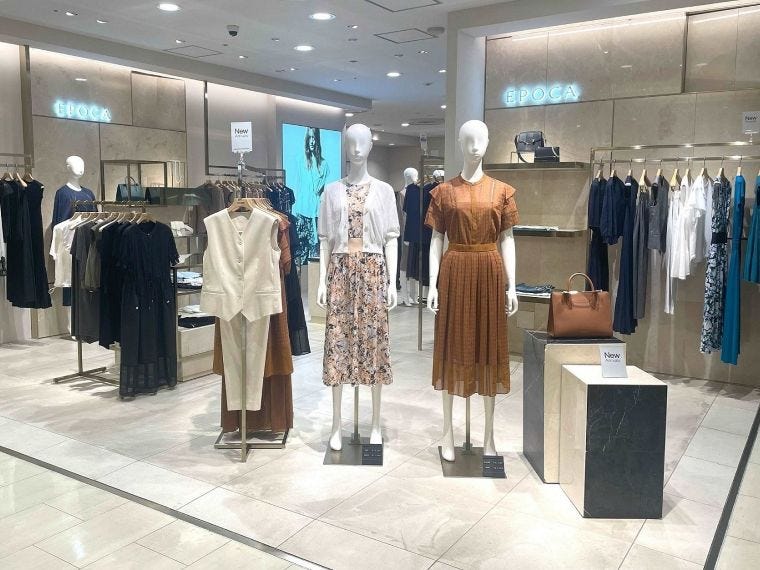 中軽衣料の強化は各社も同じで、ほかにもブラウスやショート丈アウターなどを拡充、気温が下がればレイヤードで着こなせる提案を増やした。また、秋冬物に比べて夏物の商品単価が低いこともあり、セット買いを促した。
