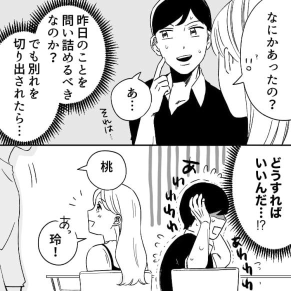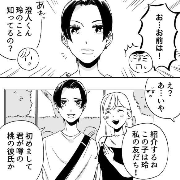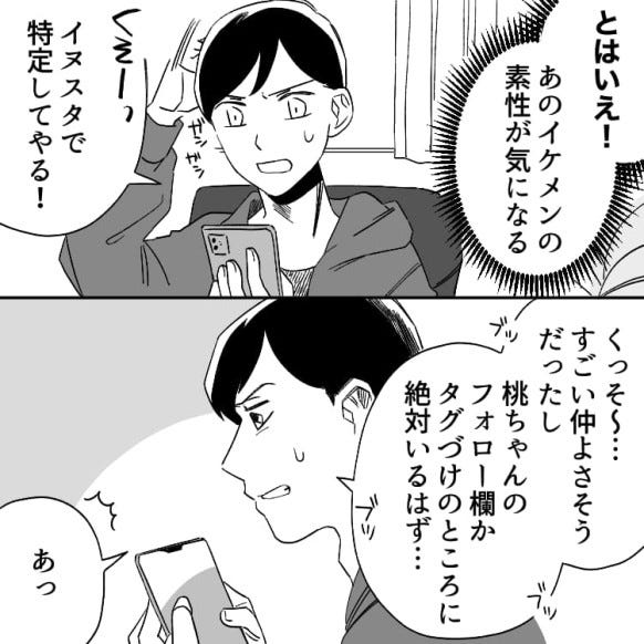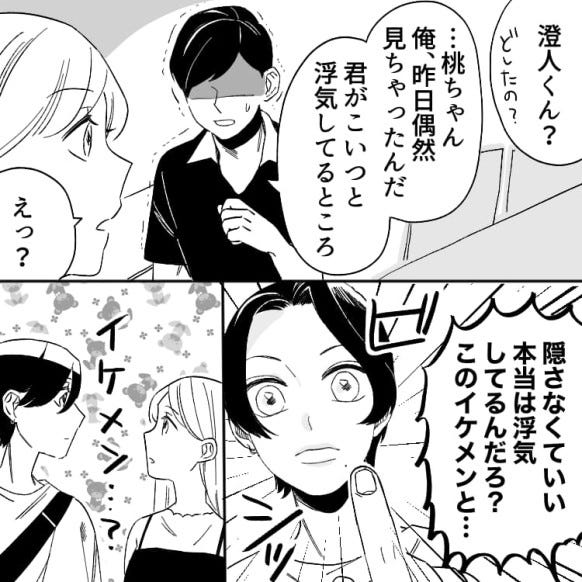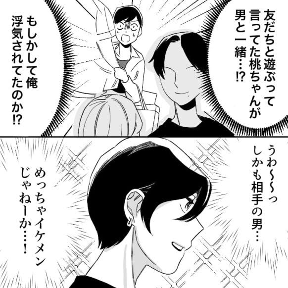 しかし彼が買い物に行くと、男性らしき人と歩く桃の姿が……。