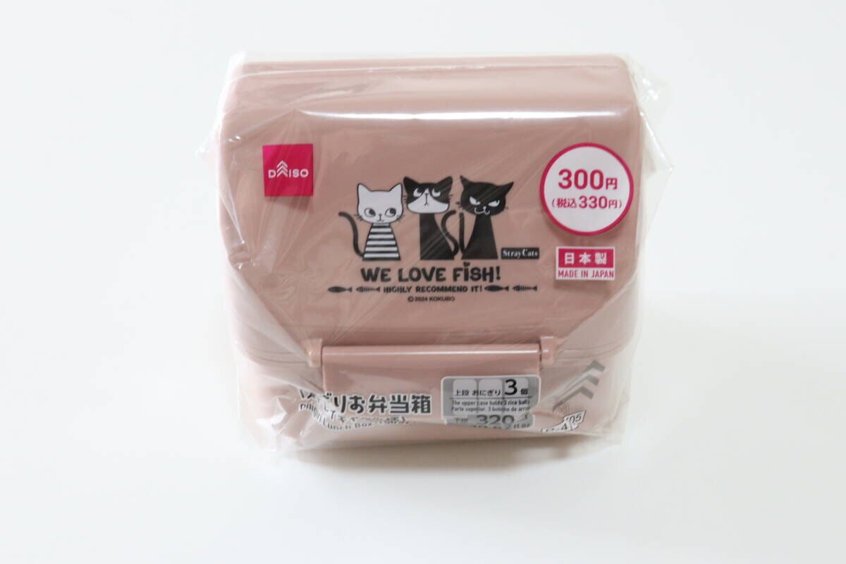 シンプル設計で扱いやすい!ダイソーの「おにぎりお弁当箱(ストレイキャッツ柄)」