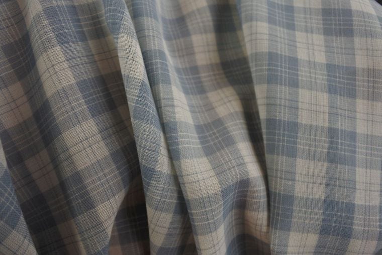 宇仁繊維は「長引く残暑でジャケットの出番が減り、気温に合わせて長期間着用できるシャツの提案が目立っている印象」として、シャツ向け素材を充実。細番手のスパン糸を使ったシースルーや、縦しわ加工を施したローンなどを揃えた。