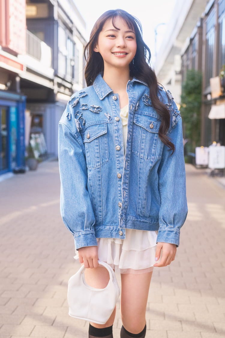 花モチーフのあしらいにキュン♡ まわりと差がつく「デニムジャケット」の着回しコーデ