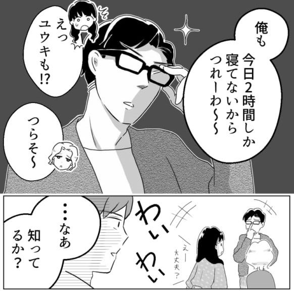 主人公のゼミ友だちは、睡眠時間が少ないことを自慢げに話してきて……?
