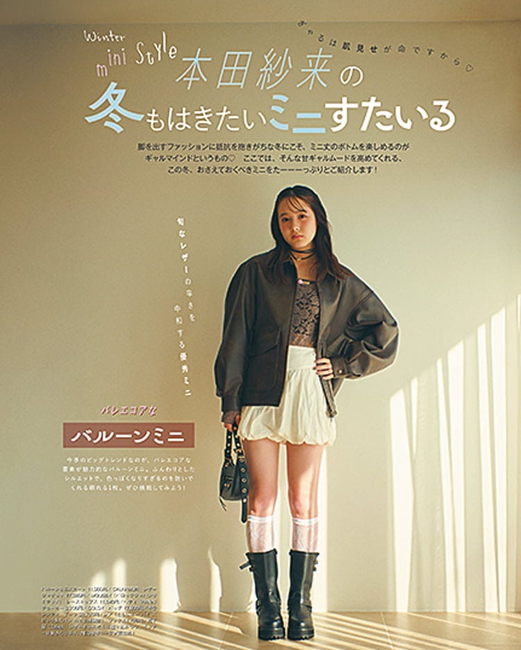 撮影/tAiki スタイリング/稲葉有理奈(KIND)ヘア&メイク/辻村友貴恵(ende)モデル/本田紗来(本誌専属)取材・文/政年美代子