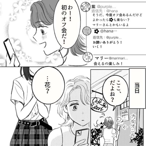 花がオフ会の会場に着くと、後ろから声をかけられます。