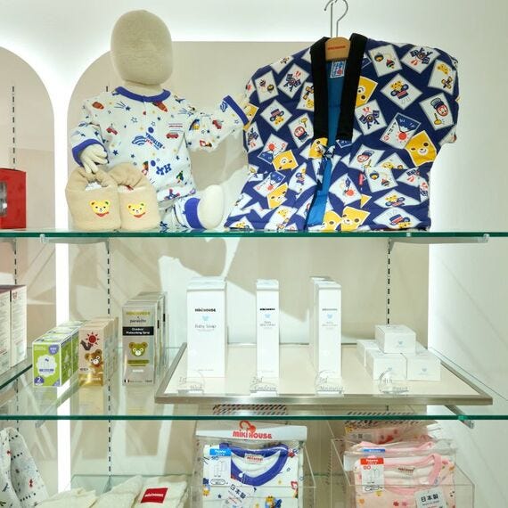 同リゾートを訪れる国内外の客に向け、高付加価値商品を販売する。最上級の素材と日本の技術にこだわった、最高級ライン「ミキハウスゴールドレーベル」を扱う。ホワイトグースダウンを使ったダウンジャケットや、ベビーカシミヤのニット帽、海島綿のパジャマや肌着など。人気のベビーシューズ売り場も設けた。スキンケア商品のほか、甚平や日本製のおもちゃ、雑貨などお土産需要を想定した商品も揃える。