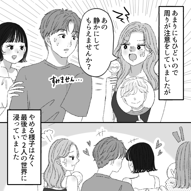 いい席が当たり、自分の席についてみると近くにはイチャイチャしているカップルが…。