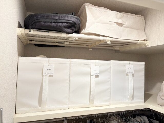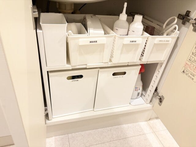 クローゼットの上段につっぱり棚や「コの字タイプ」の簡易棚を設置したり、洗面所のシンク下に棚を設置することで収納面積が大幅に上がって、入りきらなかったものが収まるケースもよくあります。