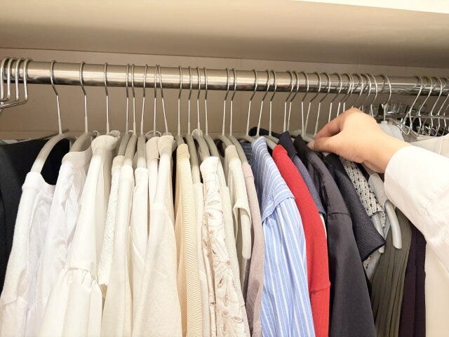 視覚的に差が出ることで、自分にとって本当に必要な服を把握しやすくなりますし、左側の服を意識的に着てみるきっかけにもなります。