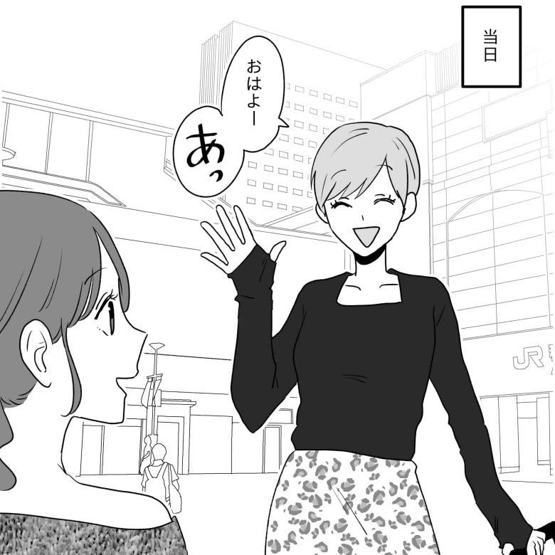 推し活友だちとランチに来た主人公。